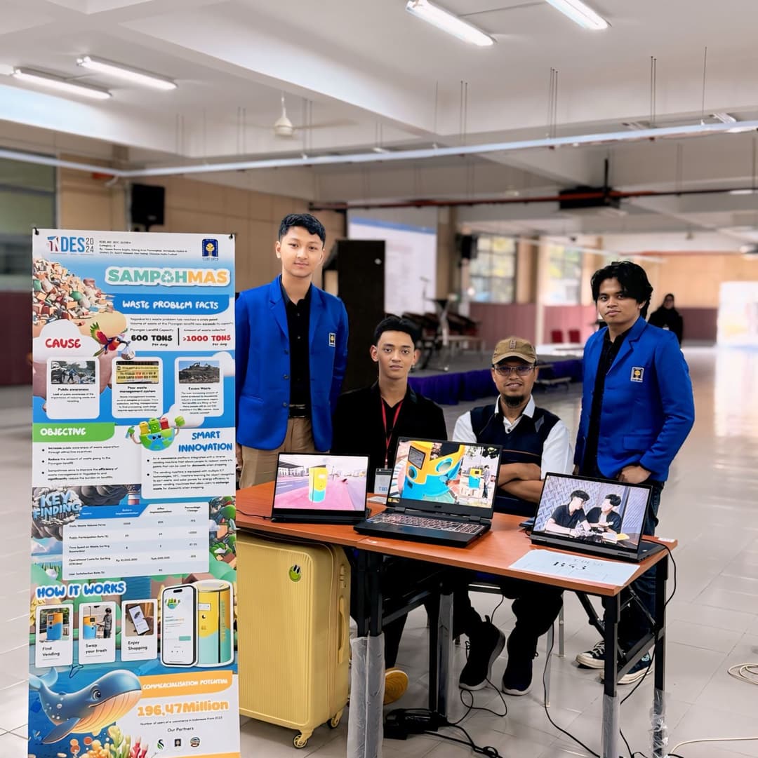 Our team achieved a great achievement by winning a gold medal at the international event "INDES 2024" held by MARA University of Technology Malaysia. We brought an innovative solution called Sampahmas, an e-commerce application that allows users to get rewards from exchanging inorganic waste in reverse vending machines for discounts when shopping. The Sampahmas app not only simplifies the recycling process, but also provides economic incentives for users. With a user-friendly interface design and excellent features such as reverse vending machine location mapping, Sampahmas caught the judges' attention. This win proves our team's dedication and hard work in creating sustainable solutions to environmental problems. This achievement also motivates us to continue innovating for a cleaner and more sustainable future.